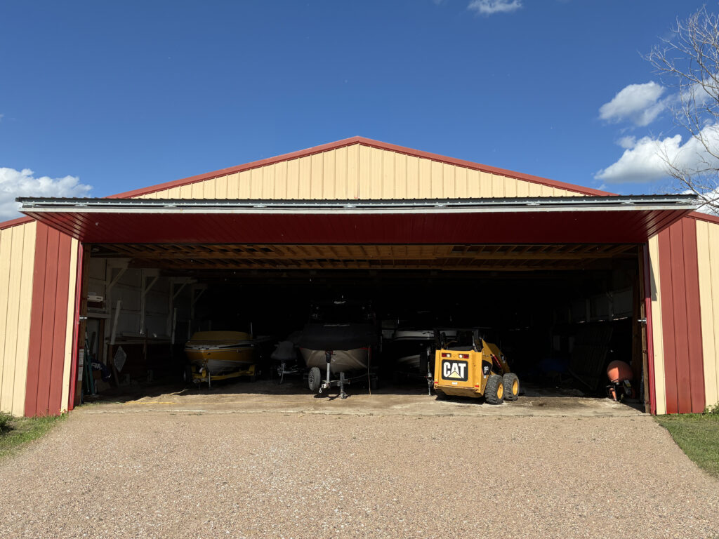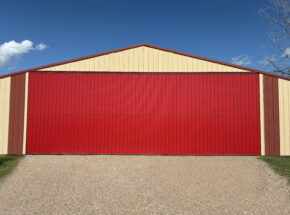 Midland Door Solutions recently gave a fresh look and improved functionality to a customer’s storage shed in Johnson Lake, Nebraska. Midland retrofitted a bright red bi-fold door for Dave Yonker — also known as “Captain’s Quarters” — who stores boats for customers. The new door, measuring 45 feet, 6 inches by 13 feet, 8 inches, replaced old sliding doors that made it difficult to access individual boats.